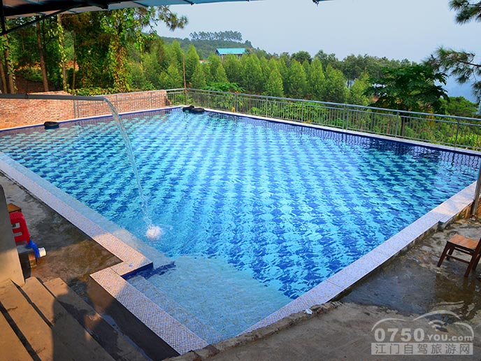 这是山庄新建的游泳池,只要在农庄里吃饭都可以免费玩水,每年的7月-8月都是玩山泉水的旺季,游客超级无敌多,多到整个池都是人。如果是9月份去的话人会少很多,但水会有点凉,只能中午或下午玩水。