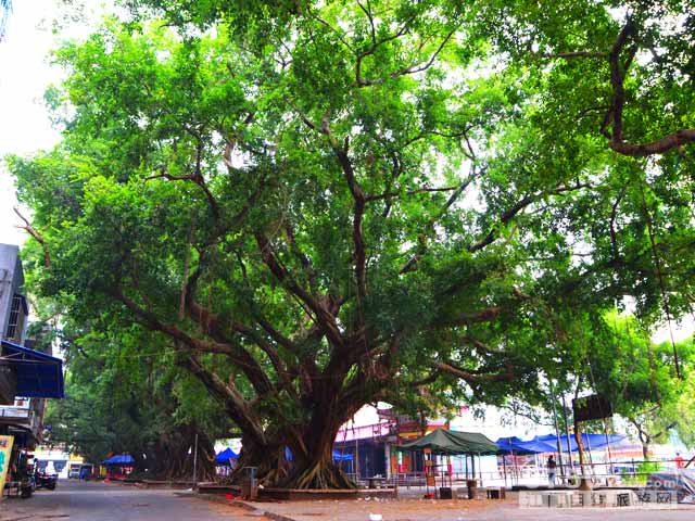 夏日炎炎,暑气凌人,榕荫之下,却是一片清凉的世界。这些老榕树,浓荫遮天蔽日,那虬曲的树身,交错的树柯,横空伸出的枝条,绿影婆娑。游人至此,顿觉空气清新,精神爽快。在这里纵目眺望,江中水平如镜,江水被浓荫染绿,江上片片白帆,东边长虹卧波,车往人来,防洪堤两端,树木扶疏,红楼隐现,真是风景这边独好。