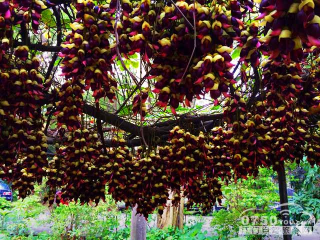 现在的农业基地唯一还值得去看的就是禾雀花了,农业基地有双色禾雀花,有紫色和白色,整个江门地区很少地方有双色禾雀花看,这是唯一的优势。其实紫色没白色的好看,只是特别而已。每逢清明节前后就会吸引大批的市民前来参观,所以清明节前后去农业基地是最花算的,除看禾雀花之外,顺便看看那大大的南瓜、葫芦瓜、番茄和温室种植的品种少的蔬菜,这样的话15元还算值得,其它时间段就不要去了。
