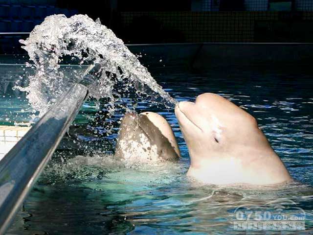 广州海洋馆的海豚、海狮表演来自美国、日本的8海豚和8只海狮,两条海豚托起训养师表演高难度的动作“空中飞人”;海狮们更是表演了滑稽的带球投篮,伸颈接套圈,向观众抛飞碟……博得观众阵阵掌声,表演成功了,它还会鼓掌“自我鼓励”呢!当您步进900立方米水体的鲨鱼馆,看到各种各样的鲨鱼,当然最惊险刺激的,还是潜水员在鲨鱼池里给鲨鱼喂食,闻到鱼腥味的鲨鱼围着潜水员转来转去,争抢潜水员带来的小鱼。