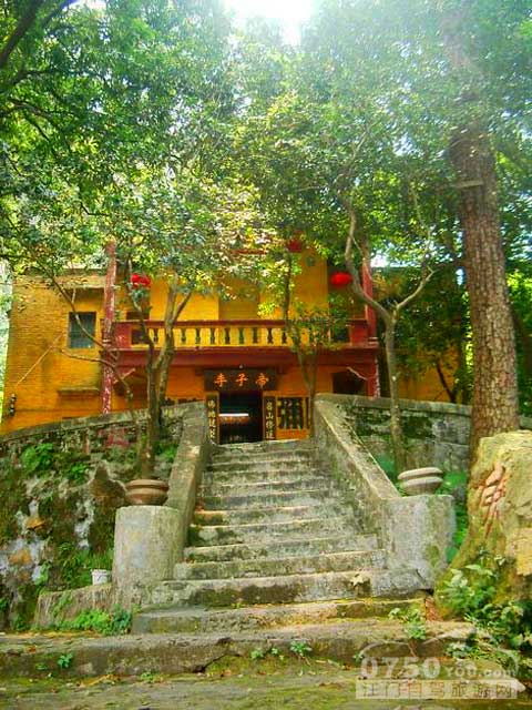 藏霞古洞位于密林深处,幽谷之中,与飞霞洞相邻。藏霞洞是一座先于飞霞洞数十年的洞观。据记载,藏霞洞建于清同治二年(1863年)。相传当时湖北祖师陈复始云游到此地,十分欣赏这块“金龟背上有形迹,仙鹤回头两相抱”的地方,原来由清远人林法善法师集资动工兴建,至同治九年竣工,总建筑面积为1.3万多平方米。藏霞的命名,据说是因为天空中的云霞飘到这里便很少流动,且经久不散,故此称为“藏霞”。这里时常在上午和黄昏时分,庙宇空屋便深藏于虚无缥缈的云雾之中,若隐若现,宛如仙境。藏霞古洞的大门,看到的是道教的王灵官的神像。他后面两边各有一颗百年树龄的桂花树。每逢深秋花季,这里挂满金黄色的桂花,而且香飘四溢,里面还供奉有道教的神仙吕洞宾。前面还有道教中的柳、樟、榆三位神仙,故叫“三仙宝殿”。站在三仙宝殿前放眼四周,左是狮山,右是象山,对面是螺星岭。