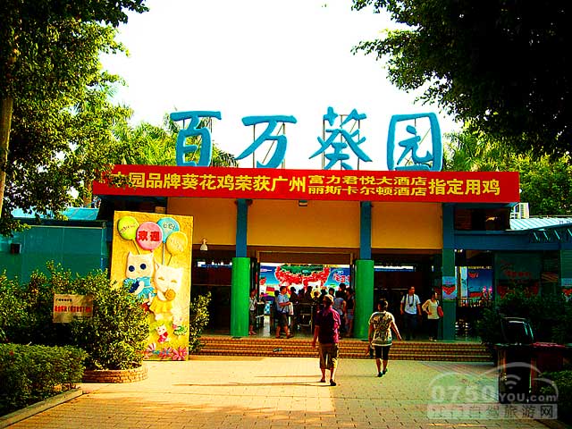 百万葵园有两样最为特别的,第一是景区内的大部份机动游戏都是免费的,主要针对小孩子游玩,都是小游戏,如果周六日人多的话小孩子还要排队才能玩。而景区内还养了1000多只松鼠以及白鸽、小猪等动物,游客只需要花几块钱就可以买食物喂养小动物。景区的第二大特色就是这里的葵花鸡,通过炒作这里的鸡要380元只,只有2.4斤重,超级贵,好吃肯定会好吃点,但值不值就见人见智啦。如果要吃饭的话最后到附近的南沙十九涌和南沙十四涌吃海鲜,5分钟就到海鲜街,先买海鲜后加工很正。